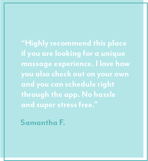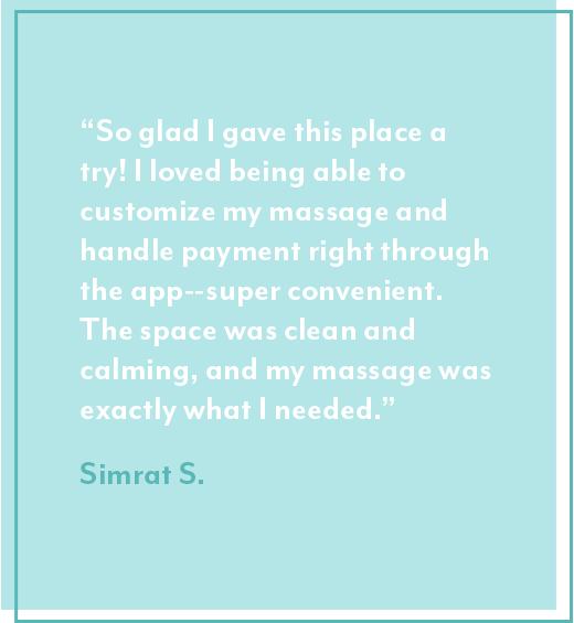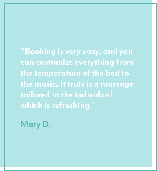 We rebuilt the entire massage experience from the ground up, so you don’t have to lift a finger (except maybe to book in the app). Our revolutionary app-based booking platform allows guests to book, set personalized preferences, pay, tip, rate, and review all at the touch of a button so you can walk in and float out.